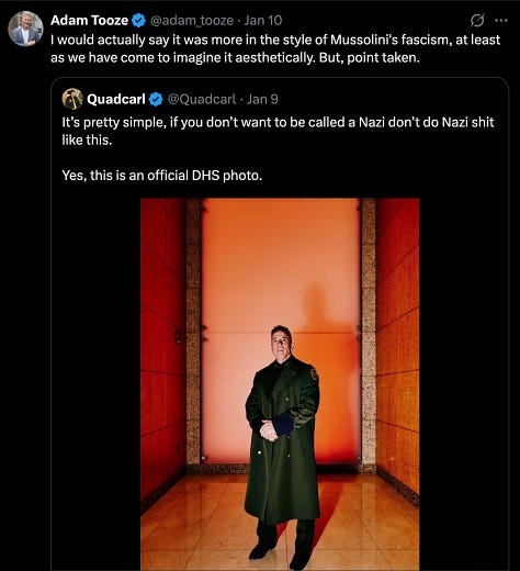 — Border Patrol Chief Greg Bovino, who showed up in Minneapolis last week, photographed for the ICE/CPB website in nearly-full Nazi drag.