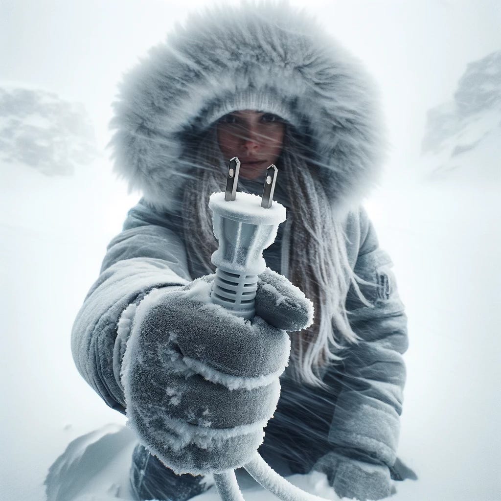 Which, in turn, increases demand for electricity at the very same time trees and power lines are freezing and blowing over and producing blackouts.
