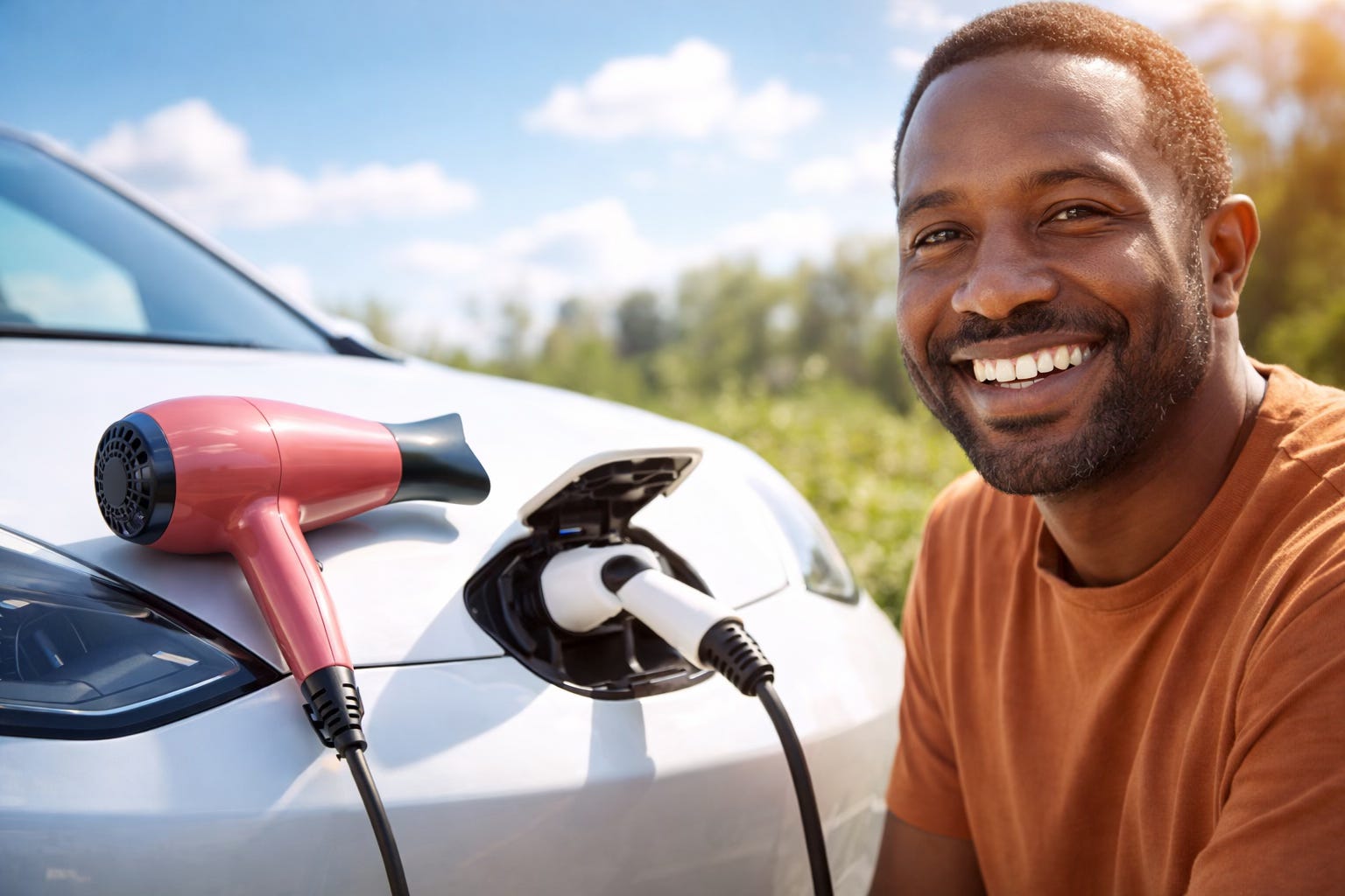 So, charging your car is about the same as running a hairdryer, our new unit of measurement.