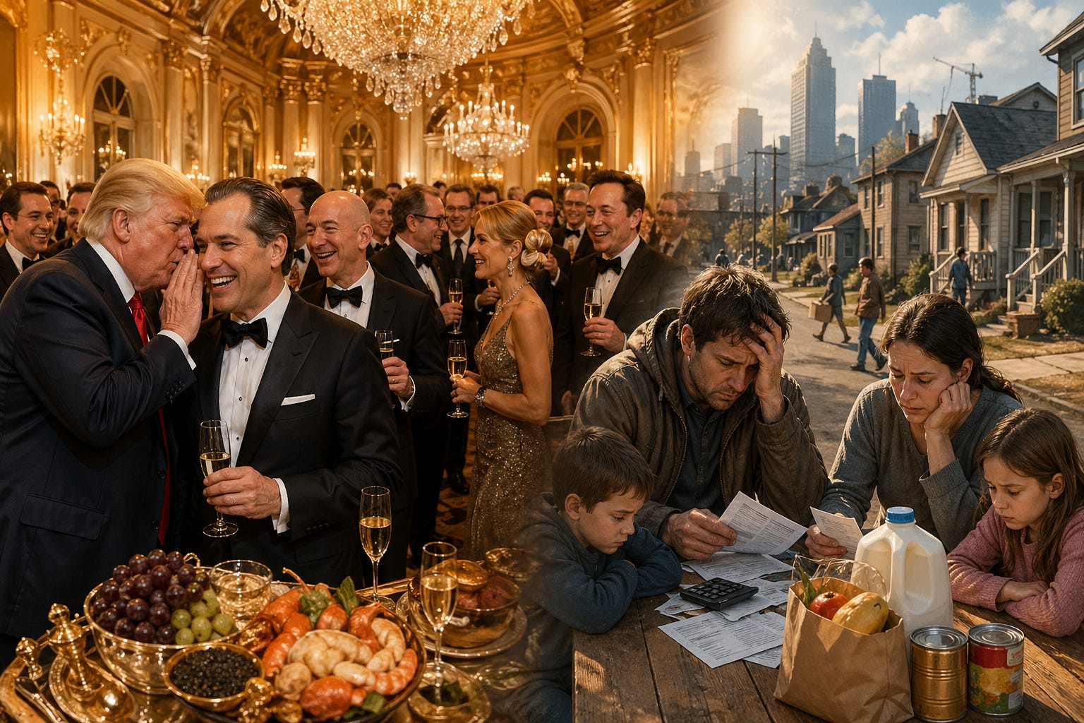 Republican deregulation weakens guardrails. Trade chaos disrupts production. Inequality hollows out demand. Tax breaks for the rich force cuts to government support for poor and middle class Americans. And when the system finally buckles, the losses to average working class people mean huge profits for the morbidly rich.