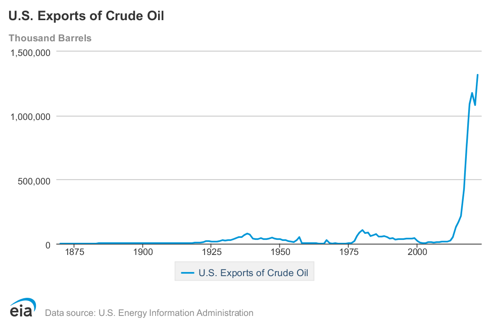 “In the first six months of 2022, 3.4 million barrels per day of crude oil were exported from the U.S., nearly three times as much as in 2017, when about 1.2 million barrels per day were exported.”