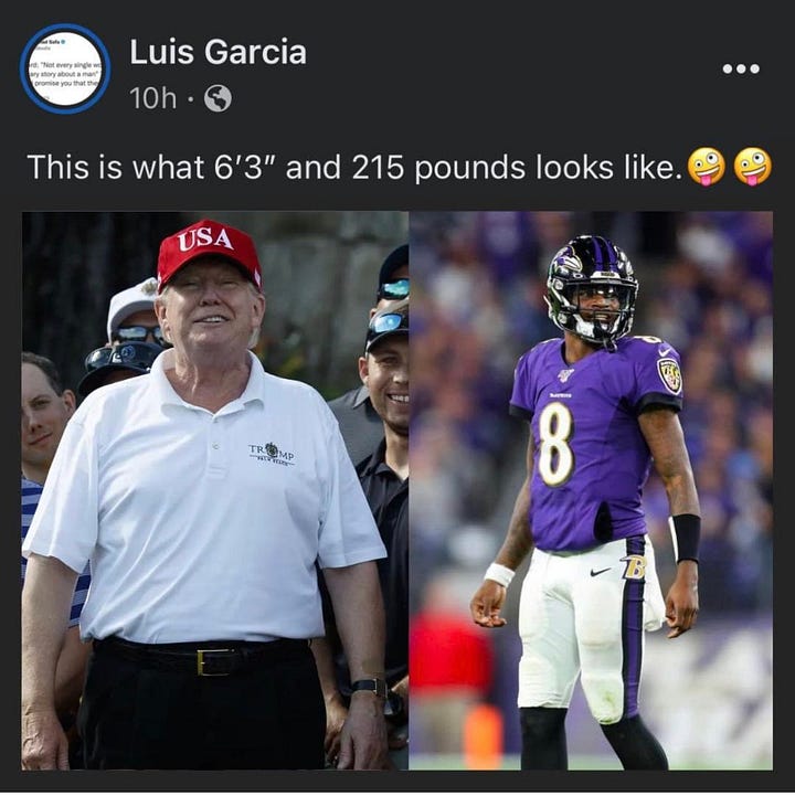 Isn’t is weird that Trump is printing “Never Surrender” under the mugshot of him surrendering to authorities at the Fulton County jail? Irony, it appears, is dead, at least in the world of Trump-humpers. Trump’s niece, clinical psychologist Mary Trump, suggests in her excellent The Good In Us Substack newsletter that to get the angry look just right Donald probably practiced it for hours in a mirror. Between that and his claim that he’s 6’ 3” and 215 pounds, his habit of wearing high-heeled/lift shoes and a girdle (and, according to the crew of his former TV show, adult diapers) Trump’s arrest has essentially broken the internet. From constipation memes, to open ridicule, to comparing his stature to 5’10” Ted Cruz and actual 6’3” Jeb Bush, to Barack Obama’s 6’1”, they all show what a neurotic (psychotic?), insecure man he is that he feels he must lie even about such easily debunked things. Or perhaps he’s a pathological liar — a compulsive, can’t-stop-himself liar — so he couldn’t help himself. Whichever it is, it’s pretty pathetic. Or, as Trump would say, sad.