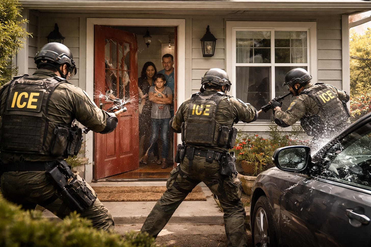 Right now, ICE is kicking in doors and smashing windows of cars in order to attack and arrest both citizens and non-citizens alike. They do it because they say they can. And to arrest, detain, and imprison people they claim they can issue their own phony, made-up “administrative warrants” and don’t need a judge or court to see any evidence or say a word.