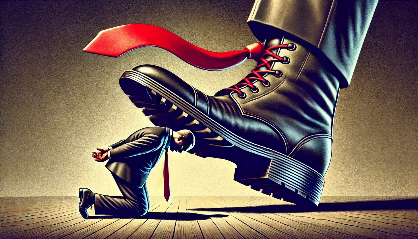 Oh, the Bootlicker Brigade, bending low, tongues out wide,Kissing the boots of the men who take them for a ride.