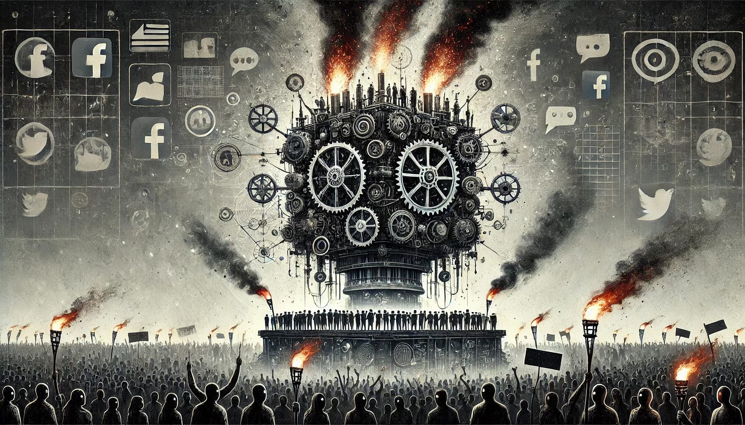 The grievance machine, it’s always on, Spinning stories dusk till dawn. Fear and lies are its gasoline, Bow to the beast—the grievance machine.