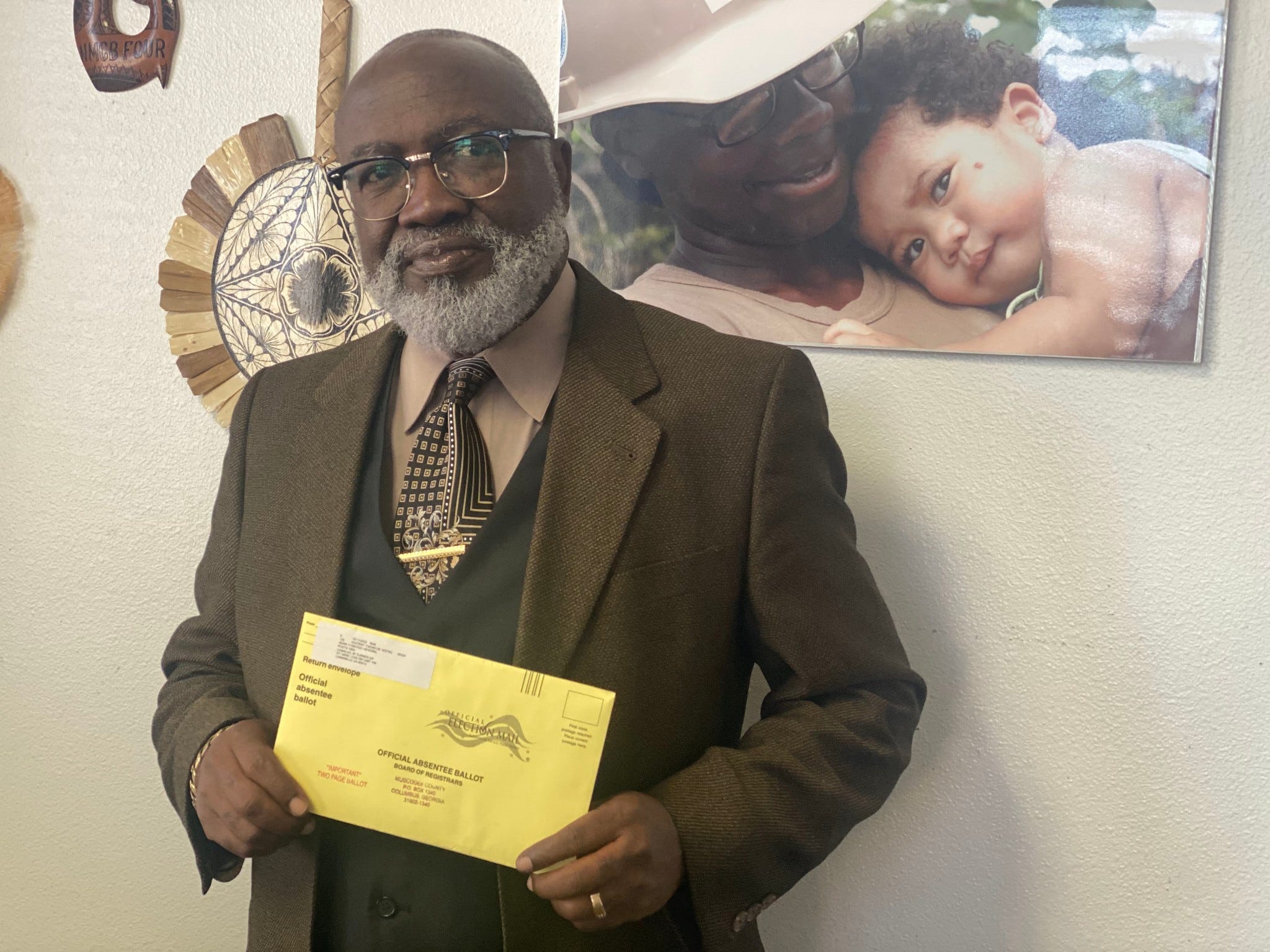 Here are photos of a Georgia voter, career military officer and Pentagon advisor Major Gamaliel Turner (Ret), demonstrating for young voters how to fill out an absentee ballot, emphasizing that it must be mailed in promptly. He did, seven days before the deadline. But we only recently learned that Georgia officials disqualified his ballot as received too late.