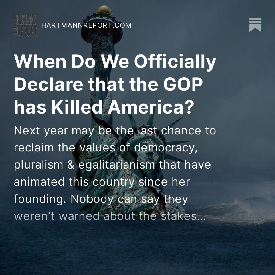 DAILY PODCAST: Thom reads every weekday article from the Hartmann Report (PAID SUPPORTER BENEFIT) Listen here . . .