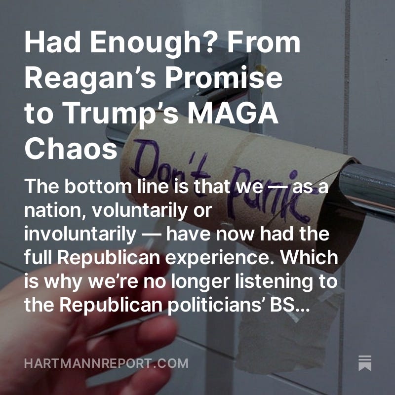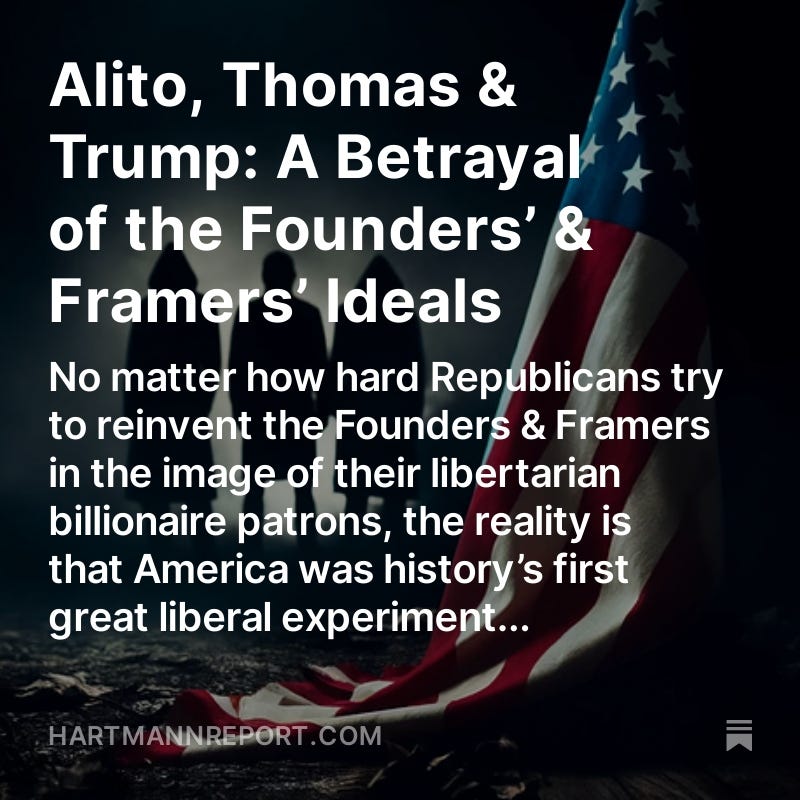 Thom Hartmann also writes three additional separate Substack newsletters. Each has both a free and paid subscription option. Below, are links to one free newsletter from each Substack from the past week plus other Substack newsletters of note that I read and recommend: