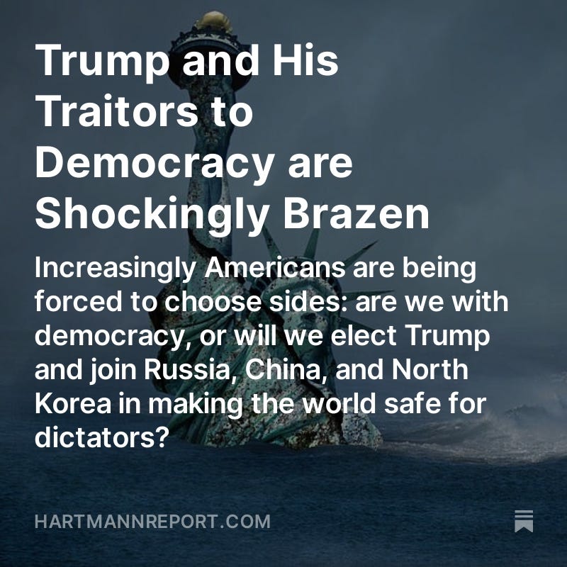 The Monday-Friday “Daily Take” articles are free for everybody; only the Podcast, Saturday News Report, the Sunday Book Excerpt and Ask Thom Anything require a paid subscription (although signing up helps us get the word out!).