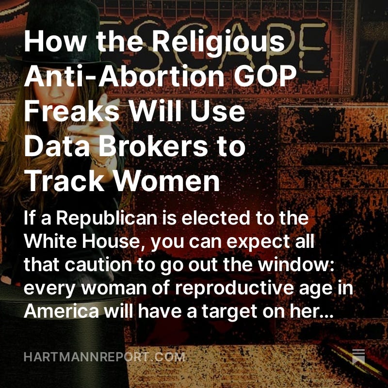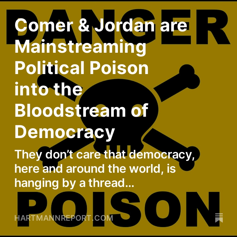 Thom Hartmann also writes three additional separate Substack newsletters. Each has both a free and paid subscription option. Below, are links to one free newsletter from each Substack from the past week: