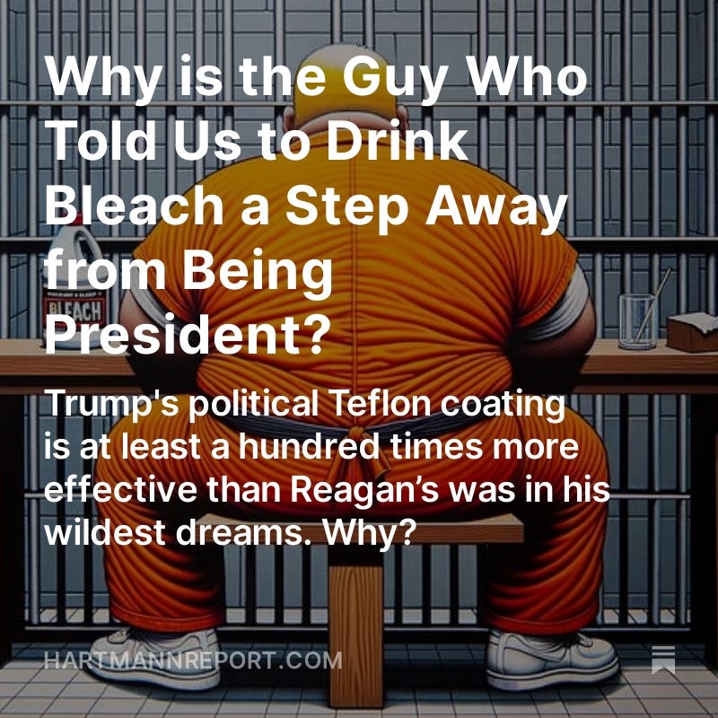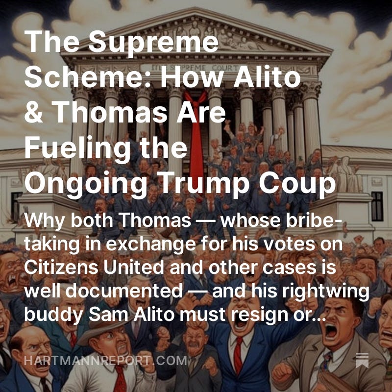 Thom Hartmann also writes three additional separate Substack newsletters. Each has both a free and paid subscription option. Below, are links to one free newsletter from each Substack from the past week: