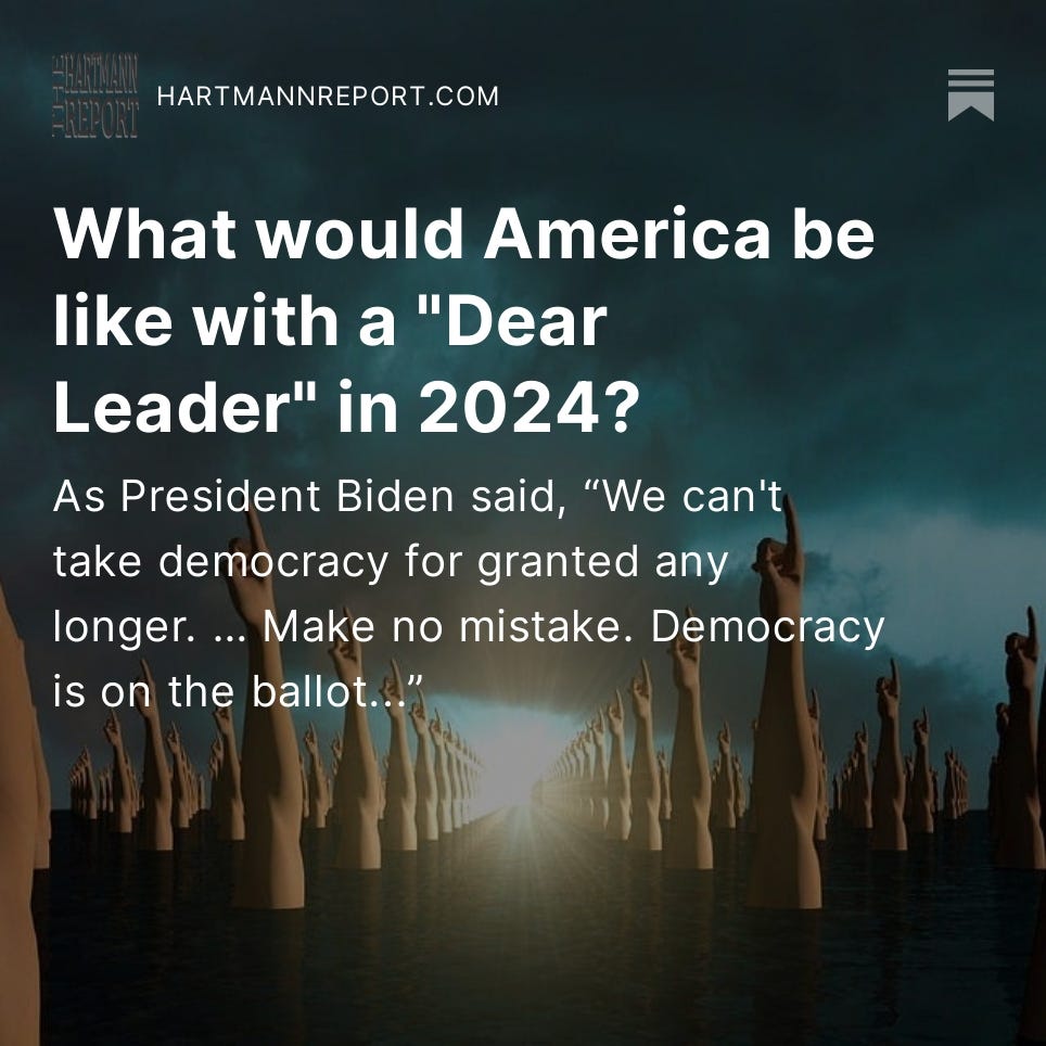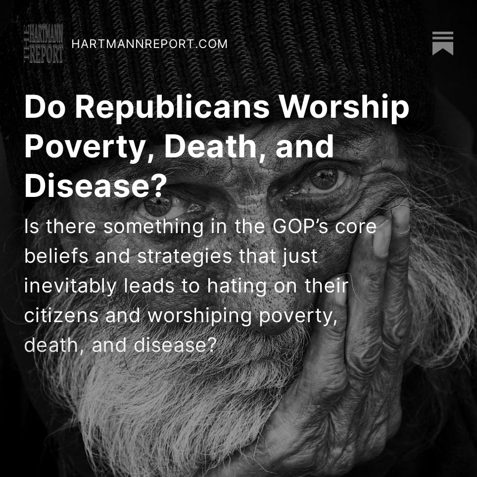 The Monday-Friday “Daily Take” articles are free for everybody; only the Podcast, Saturday News Report, the Sunday Book Excerpt and Ask Thom Anything require a paid subscription (although signing up helps us get the word out!).