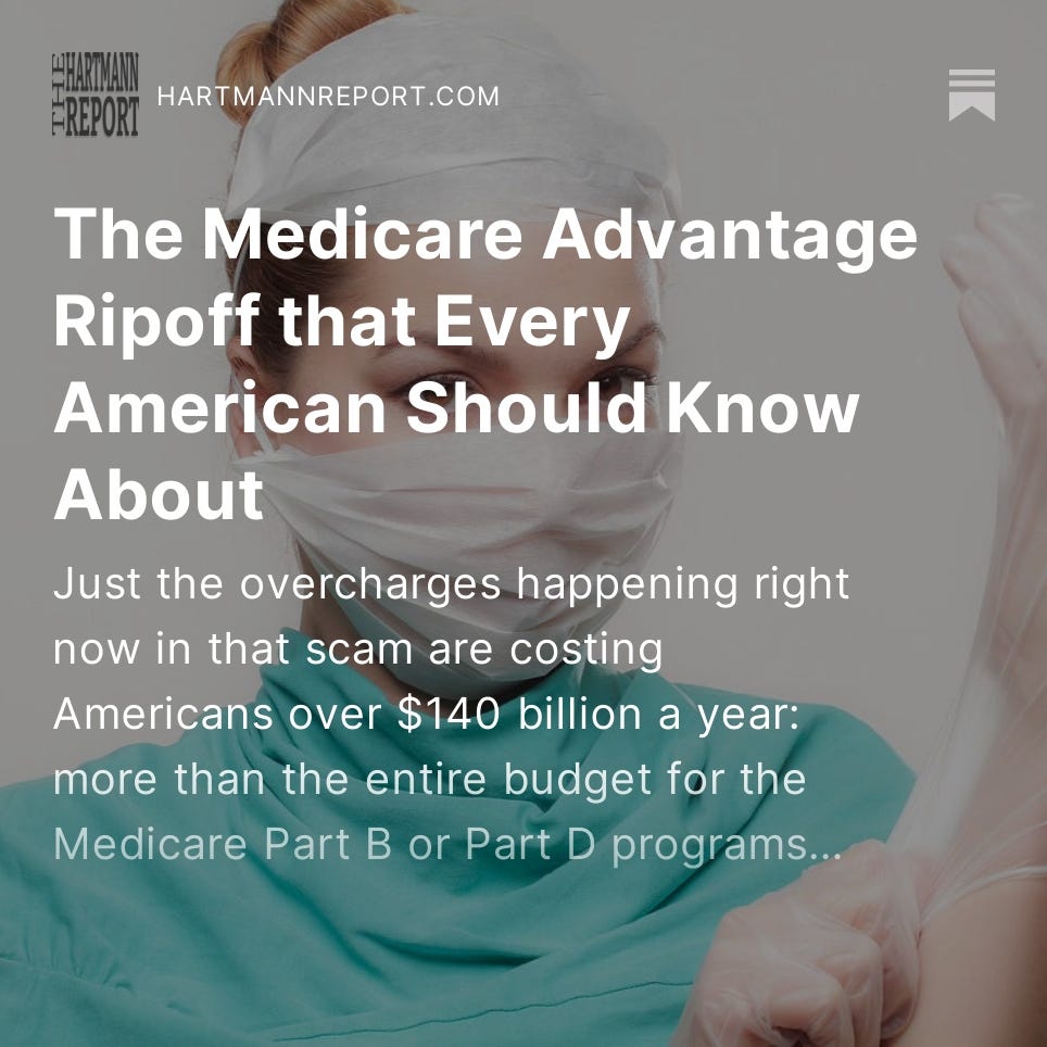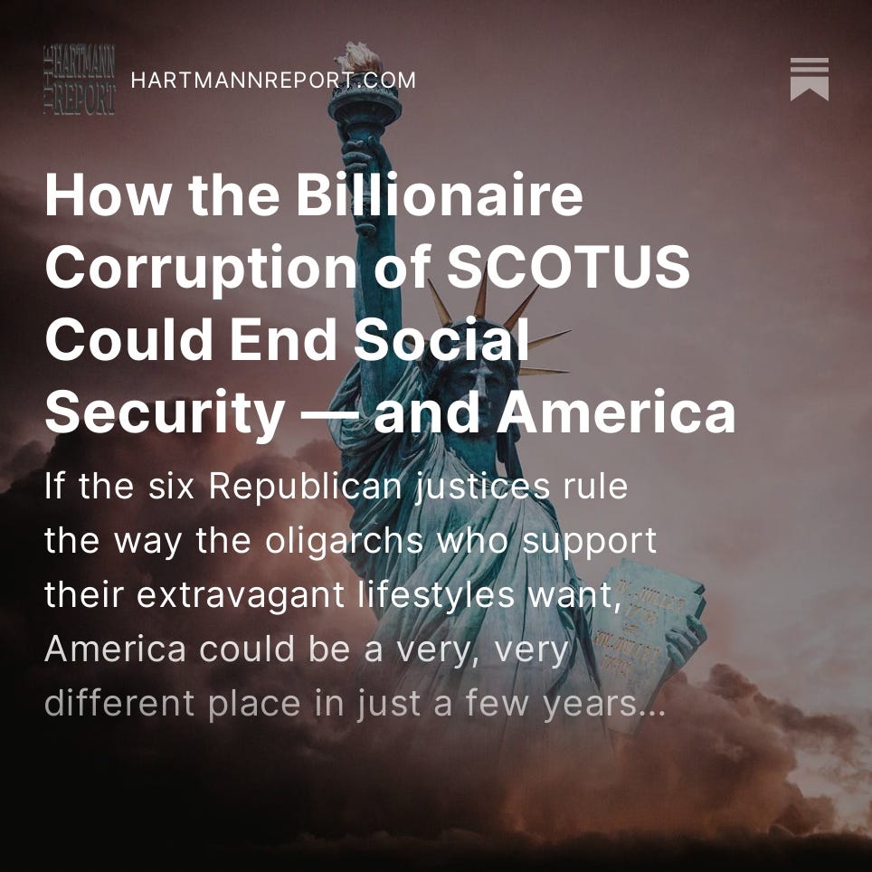 The Monday-Friday “Daily Take” articles are free for everybody; only the Podcast, Saturday News Report, the Sunday Book Excerpt and Ask Thom Anything require a paid subscription (although signing up helps us get the word out!).